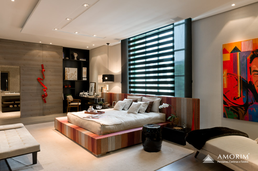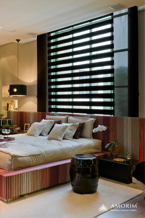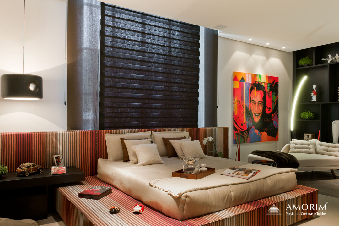 - Graças ao moderno desenho da Cortina Rolô Stillo é possível controlar a luminosidade e privacidade.
