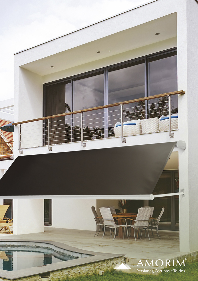 Para prolongar áreas úteis de espaços externo. Permite controlar os raios solares. Perfeito para varandas, jardins e terraços.